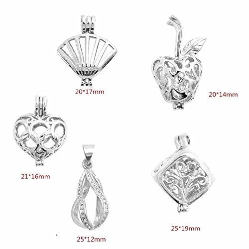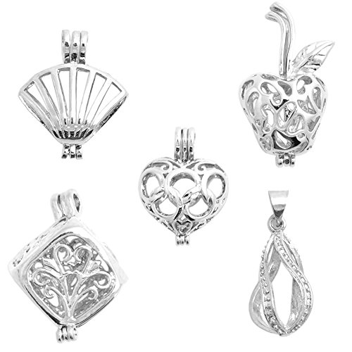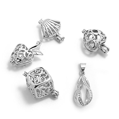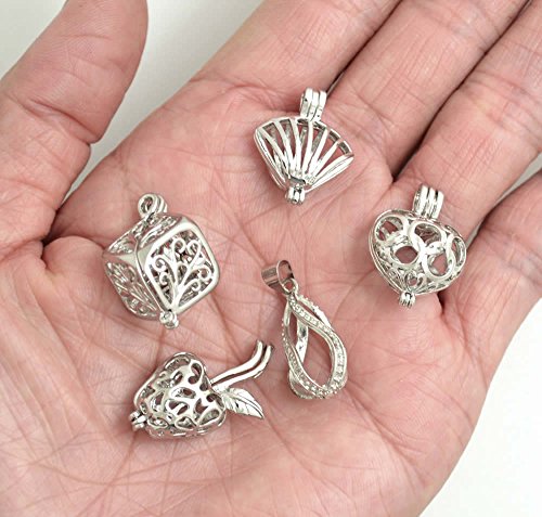 BronaGrand 5pcs Mixed Shape Alloy Pearl Bead Cage Pendants,Essential Oil Diffuser Locket,Bracelet Charms,DIY Necklace Charms