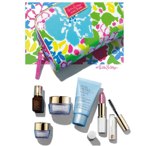 Choose a moisturizer: DayWear Advanced Multi-Protection Anti-Oxidant Creme SPF 15 or Resilience Lift Firming/Sculpting Face and Neck Creme SPF 15 Choose your color: Subtle includes Pure Color Long Lasting Lipstick in Sugar Honey (full size) and Pure Color EyeShadow Quad in Sugar Biscuit, Nude Fresco, Hot Cinnamon, and Lavish Mink; Bold includes Pure Color Long Lasting Lipstick in Pink Parfait (full size) and Pure Color EyeShadow Quad in Tranquil Moon, Iridescent Violet, Tempting Mocha, and Amethyst Spark Sumptuous Bold Volume Lifting Mascara in Black Take It Away Makeup Remover Lotion Advanced Night Repair Serum Exclusive Lilly Pulitzer print cosmetic bag.Feature