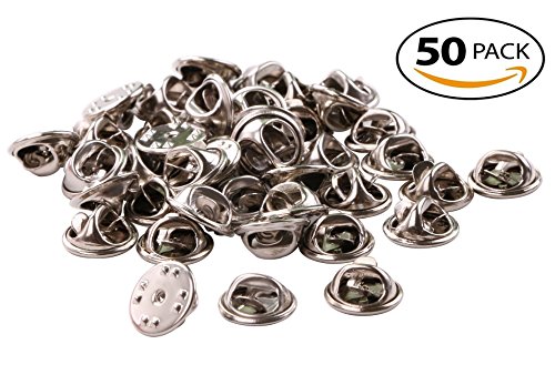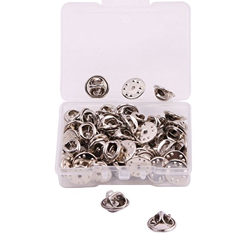Shapenty 10mm/0.39inch Diameter Brass Butterfly Clutch Metal Uniform Badge Pin Backs Keepers Replacement Tie Tack Lapel Pin Backing Holder Clasp, Silver, 50PCS