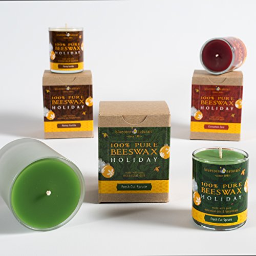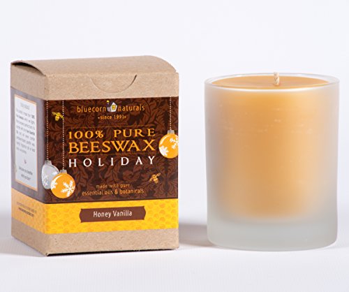 Bluecorn Beeswax 100% Pure Beeswax Holiday 8oz. Glass (Honey Vanilla, 8oz.)
