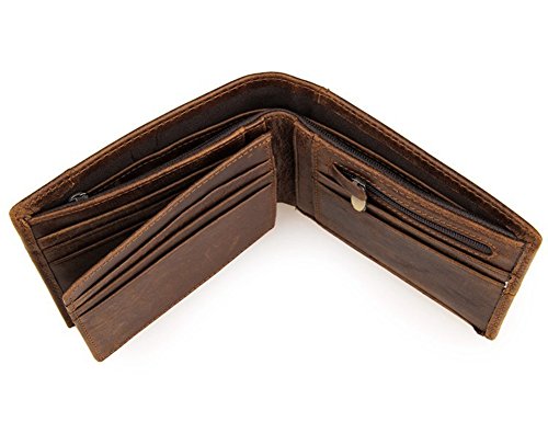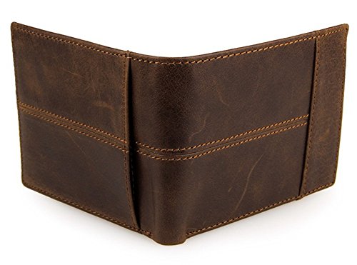 -. Binding : Apparel -. Brand : DRF -. Color : Brown -. Department : mens -. Feature : Natural fold construction / 4 3/4" (L) x 3 3/4" (H), Net weight: 0.12 kg, Color: brown, Style: bifold / 8 credit card slots, 2 big bill compartments, 4 compartments, 2 zip coin pockets / This popular style combines the trim profile of our Slim Billfold with the convenience of ID window. Precisely crafted in cow Leather with a vintage look and a great hand. / Leather bifold wallet with layered front and extra slots and pockets throughout -. ProductGroup : Apparel -. ProductTypeName : ACCESSORY -. Size : Small -. Title : DRF Men's Vintage Genuine Leather Bifold Wallet Extra Capacity BG-206