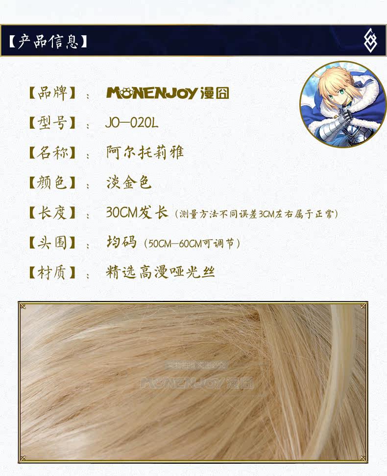 Fate/Zero Saber/阿尔托莉亚(包子版)奶金Cos假发现货