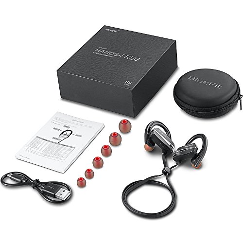 -. Binding : Electronics -. Brand : BlueFit -. Color : Black -. Department : unisex-adult -. Feature : LONGEST BATTERY LIFE - The super large capacity 180mAh lithium polymer battery allows seamless enjoyment of music for up to 12 hours and 400 hours stand-by with a quick charge of only 2 hours. / IPX-7 WATERPROOF RATING, COMFORTABLE AND SECURE FIT - Ergonomically designed flexible ear hooks with gel flex silicone earbuds to ensure your headphones stay comfortably firm in place to guarantee fatigue free ears and tangle free comfort. / TRUE HD HIGH FIDELITY SOUND : Featuring latest high-end Bluetooth 4.1 CSR technology and state of the art acoustic components that produce incredible sound quality with deep bass and crystal clear treble. / BLUETOOTH V4.1 WIRELESS TECHNOLOGY WITH CVC 6.0 NOISE SUPPRESSION TECHNOLOGY - Connect seamlessly with all Bluetooth enabled devices up to 30 feet away. With Noise Suppression technology focus on your favorite music and answer calls without skips or missed words. / 1 YEAR WARRANTY AND BONUS ITEMS - Bonus Accessories with 1-Year Manufacturer's Warranty and 45 days no-questions-asked return policy. Value for money guaranteed, Buy the BlueFit M2 Running Bluetooth Earbuds worry free today. -. IsEligibleForTradeIn : 1 -. Label : BlueFit -. Manufacturer : BlueFit -. Model : M2 -. MPN : M2 -. PartNumber : M2 -. ProductGroup : Speakers -. ProductTypeName : HEADPHONES -. Publisher : BlueFit -. Studio : BlueFit -. Title : Bluetooth Earbuds, Waterproof Wireless Headphones In-Ear Buds Earphones Headset with Mic + Case for Running Sport, Noise Cancelling