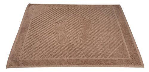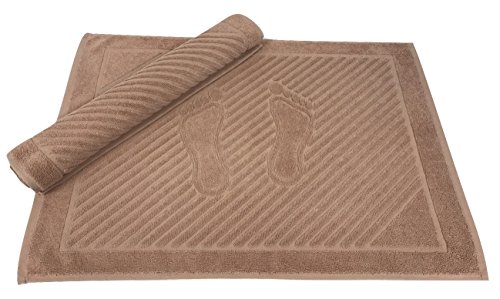 ✅ Set includes two cotton bath mats in camel brown measuring 20 x 28 inches each. Towel-like bath mat offers added safety and a warm, dry place to stand when stepping out of the shower.