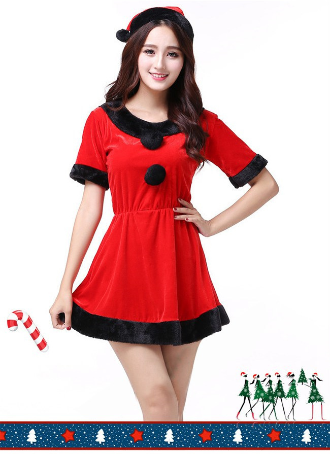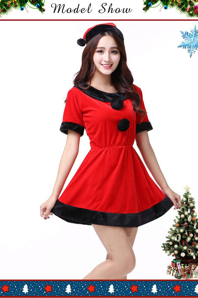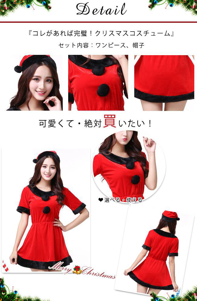 サンタ コスプレ レディース クリスマス 衣装 半袖 aライン ポンポン飾り ワンピース 帽子 コスチューム かわいい サンタクロース 仮装 変装 大人 服 セットアップ サンタコス セクシー 黒赤 バイカラー パーティーグッズ イベント用品 余興 xmas Christmas cos 女性用