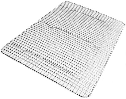 - Feature : Commercial standard Stainless Steel Grade 304 Cooling and Baking Wired Rack. Perfect for Hot Food or Hot Pans to Cool Down and Great for Baking Food. / 12 X 16.5 inches Half sheet Large size. Large enough to meet your needs. Great Gift for Baking Supplies / Oven and Dishwasher Safe and Easy to Clean. / Durable for Baking, Roasting, Decorating and Cooling. You can bake crispy food in oven. Food is evenly heated from all sides. / Fits in 13"X18" Half Sheet Pan, Half Cookie Sheet, and Parchment Paper Half Sheet