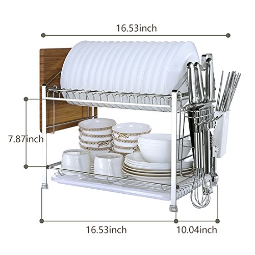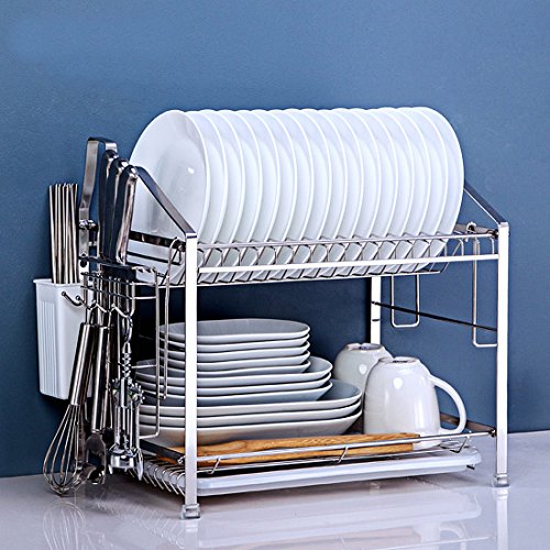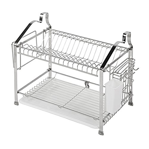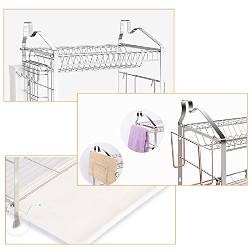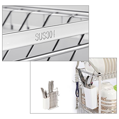 YOMYM 304 stainless steel 2 tier kitchen organizer and storage with drying rack and cutlery holder