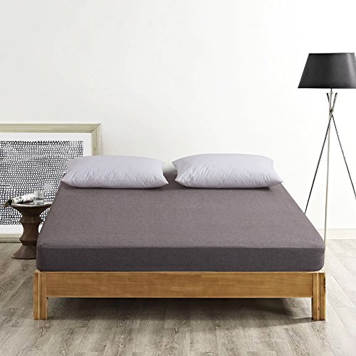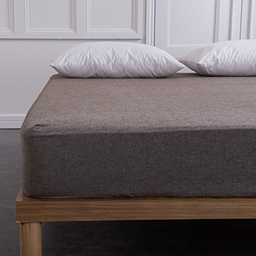 Kiss&tell Cotton Linen Wrinkle Count Queen Fitted Sheet, Gray (Queen, Gray Fitted Sheet)