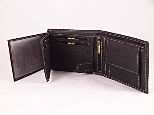 -. Title : Edle Leder Geldbörse Herren Männer Geldbeutel Geldbörse Portemonnaie Portmonee Börse schwarz NEU geöltes Rindleder