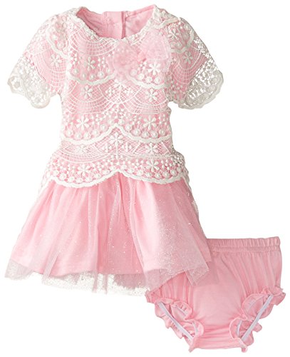 Dress with sparkle tulle dress with lace overlay. There is a tacked on sparkle bow. Panty