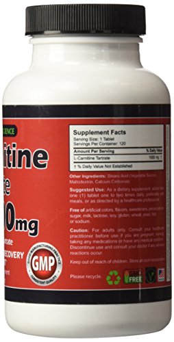 -. Title : L-Carnitine Tartrate - 1000mg - 120 Double Potency Tablets - Provides Support for Fat Metabolism, Healthy Energy Levels, Athletic Performance, Exercise Endurance, Workout Capacity, Post-Exercise Recovery, Healthy Heart and Muscles - 100% Pure - GMO-Free - GMP Certified - Made in USA