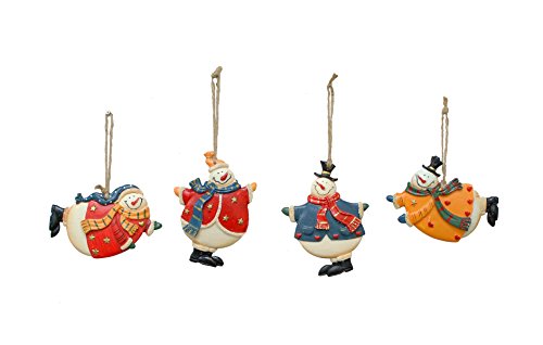 YK Decor 4 Assorted Christmas Wood and Resin Flying Snowman Ornaments
