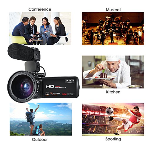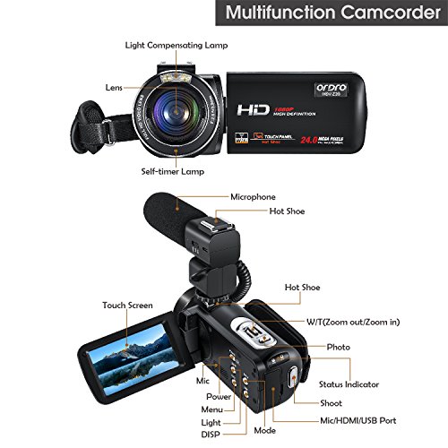 ORDRO Camcorder with External Microphone and Wide Angle Lens We are HDV-Z20 original brand manufacturer, ORDRO offers 12-month warranty and friendly service.This a great video camera use to record athletic sport events, musical, meeting, and other indoor, outdoor activities. Support 3 video resolution 1080p 30fps, 720p 30fps, 480p 30fps. MOV format. Internal speaker and microphone, support operation windows XP/VISTA/7/8/10.