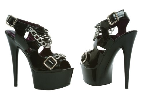 Product DescriptionBe a heavy metal lover in these 6" peep toe platform with chain link details.0