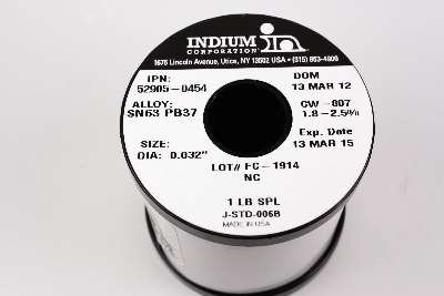 Indium Wire Solder, .032 in., Sn63 Pb37, CW-807, 1 lb. Spool
