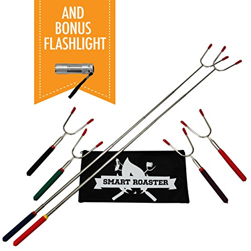 Marshmallow Roasting Sticks - A Must for Any Camping Kitchen and Roasting Marshmallows or Hot Dogs – Telescoping – Set of 6 with Carrying Bag – Bonus Mini LED Flashlight – Campfires Made Fun