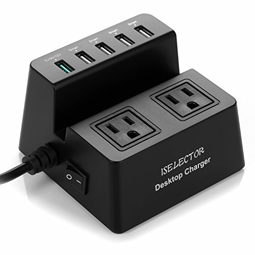 Multiple USB Charger with Fast Charging (5V/9V/12V),40W 5-Port Charging Station and 1700J 2 Surge Protected Power Strip