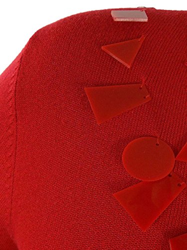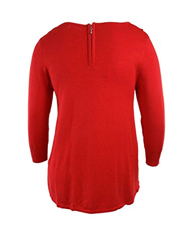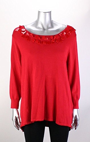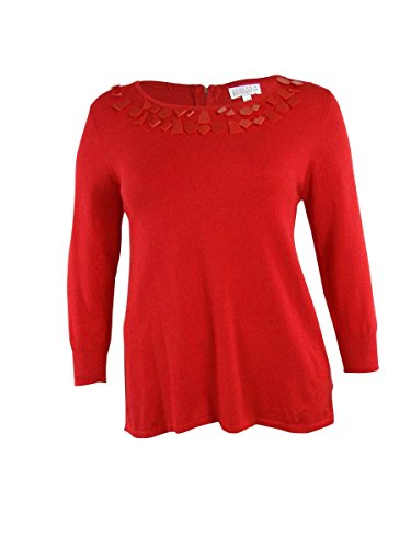 This feminine knit sweater from Joseph A features banding at waist and ribbing on cuffs, long sleeves, beaded round neck, quarter zip back, and knit finish.
