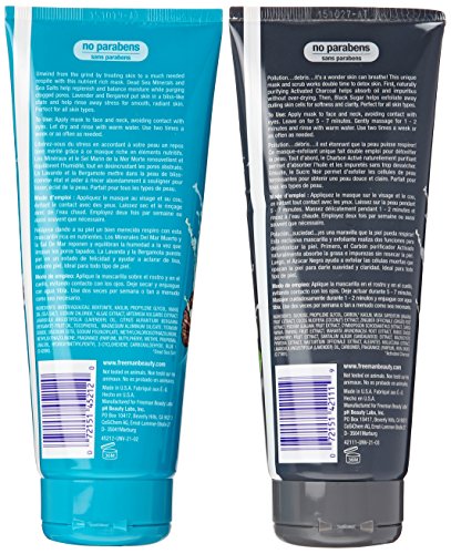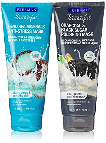 FREEMAN MASK BUNDLE: ONE DEAD SEA MINERALS ANTI-STRESS MASK (6 OZ.) AND ONE CHARCOAL & BLACK SUGAR POLISHING MASK (6 OZ.) PURIFYING MASK-CLEARS PORES & SMOOTHS SKIN