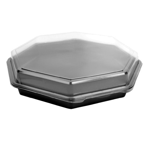 SOLO 863611-PS94 Creative Carryouts OctaView Polystyrene Hinged Cold Food Container, Octagonal, 12.5" x 12" x 3.2", Black/Clear (Case of 100)