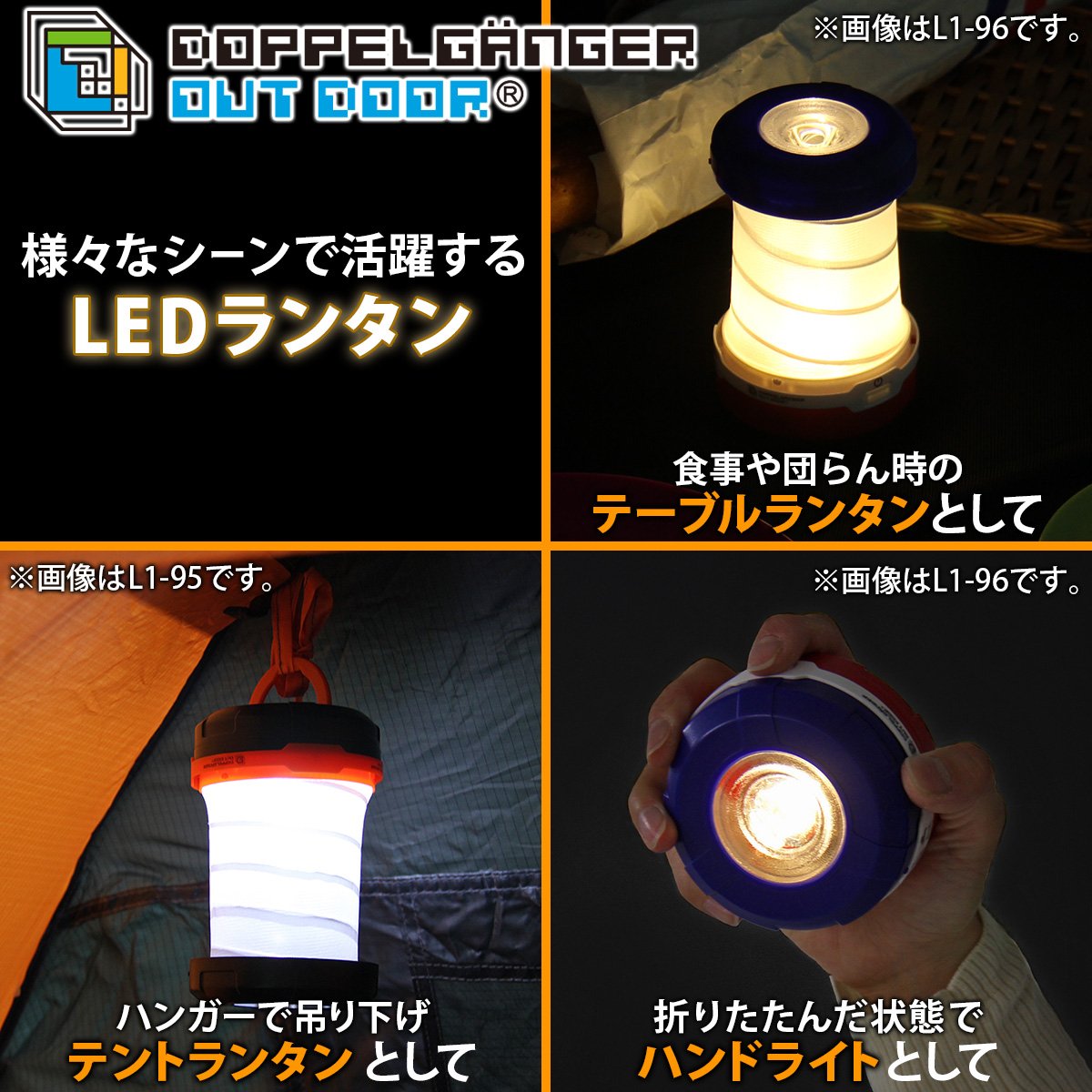 Tent lanterns, table lanterns, flashlights and other lights necessary for camping, as well as desk lights during the off season, reading lamps before going to bed, indoor / outdoor can be used in a wide range of applications.