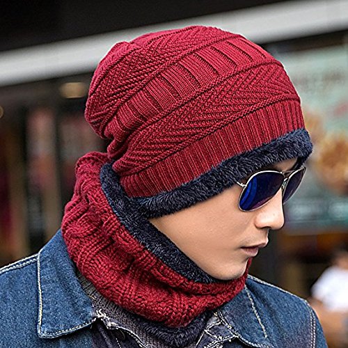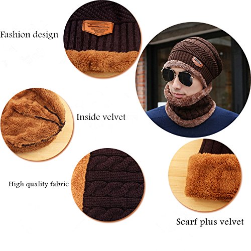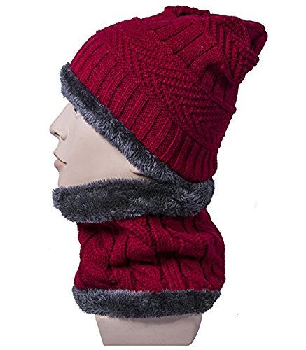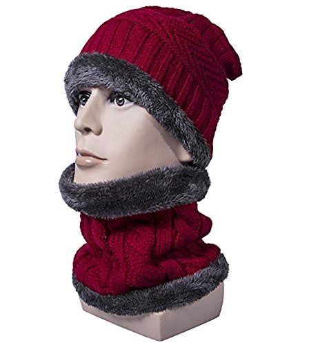 Product DescriptionMaterial: outer-acrylic knit, inner-fleece lining. Size: cap-10.2"*9.8", scarf-8.7"*9.4", circumference-22"-23.6". Color: Wine red, Dark grey, Dark blue, Khaki, Coffee, Black. Package include: 1*skull cap 1*scarf0