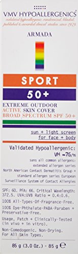 Product Description Vmv hypoallergenic armada sport 70 is a highly protective formula that effectively blocks uva and uvb rays to help prevent sunburn, hyperpigmentation, photo aging and even skin cancer. 0