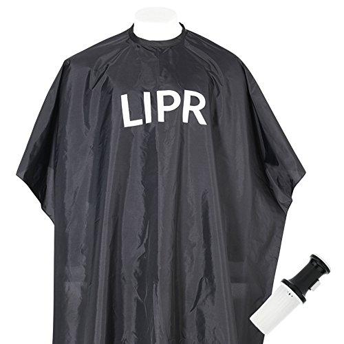 Hair Salon and Barber Cape 50” x 60” Black Nylon with Snap Closures, Includes Neck Duster Brush by LIPR