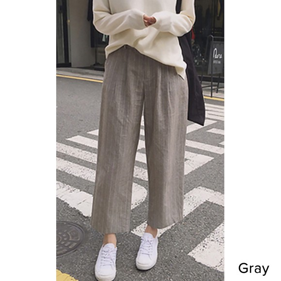 涼しげな夏素材のピンストライプ柄ガウチョパンツです☆ゆったりとしたシルエットでコーデにラフ感を出してくれます!短めのトップスと合わせれば脚長効果も期待できます♪シンプルなキレイ目のデザインで幅広いコーデにマッチする優秀アイテム☆ややハリのある薄手の素材でさらりと着用いただけます。【サイズ詳細】S ウエスト:約69cm ヒップ:約100cm 総丈:択84cm 股下:約56.5cmM ウエスト:約71cm ヒップ:約108cm 総丈:約85.5cm 股下:約57.5cmL ウエスト:約79cm ヒップ:約110cm 総丈:約86.5cm 股下:約57.5cm素材:ポリエステル※薄手の素材です。