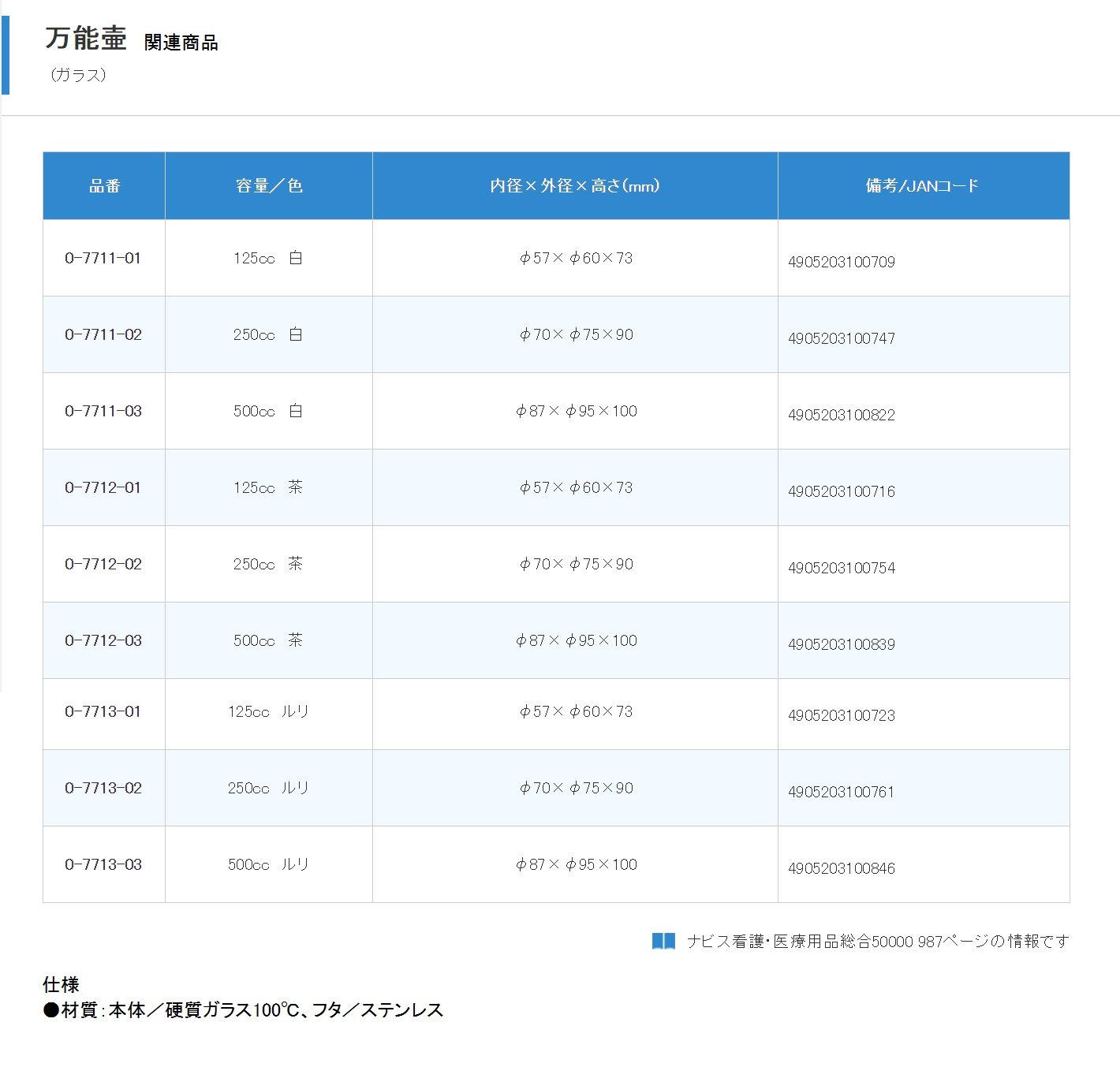 ● Material: Main body / hard glass 100 ° C, lid / stainless steel ● Capacity / color: 250 mL Ruri ● Inner diameter × Outer diameter × Height (mm): φ70 × φ75 × 90
