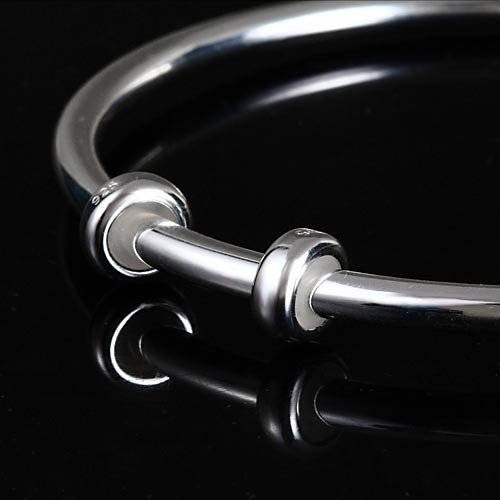 Authentic 925 Sterling Silver Bangles with 2 Stopper Charms Bracelet for Women Jeweley