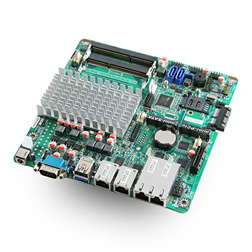 -. Feature : Intel Celeron N2930 1.83 - 2.16 GHz Quad Core Processor; Intel HD Graphics, 313 MHz - 854 MHz / Supports 2x 204-pin DDR3L SODIMM Memory, Maximum 8GB Capacity, 1333MHz Minimum, Low Voltage 1.35V Required / Supports 2x SATA2 3.0Gb/s Drives and 1x mSATA slot; Supports 2x PCI-E x1 (2.0) / 4x Intel i211AT Gigabit LAN; Supports 1x Mini PCI-E (half length); Includes 3G SIM Card Holder / Form Factor: Mini-ITX 170mm x 170mm (6.7" x 6.7")