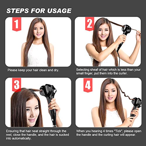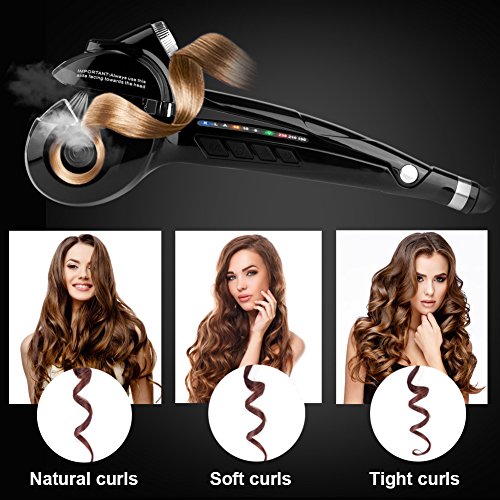 Three Timer Settings With Beep Alarm- With 3 heat settings available, this hair curler is able to adapt to different hair types.Select between 3 time settings (8-10-12 seconds) and thus determine their desired curling effect Choose from left curls, right curls, or an automatic mix.The Automatic Curling Iron beeps when the it reach the setting time.