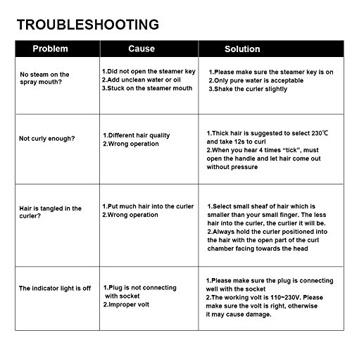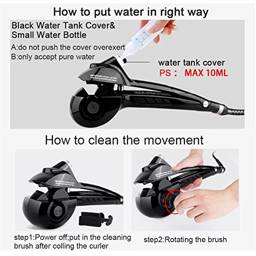-The Curling Iron Wand nourishes and moisturizes hair using hydrating steam mist. Women can enjoy big volume curls, shiny waves, beachy waves and different curling styles.