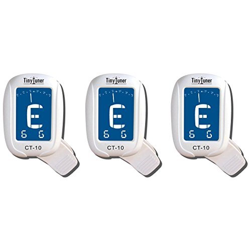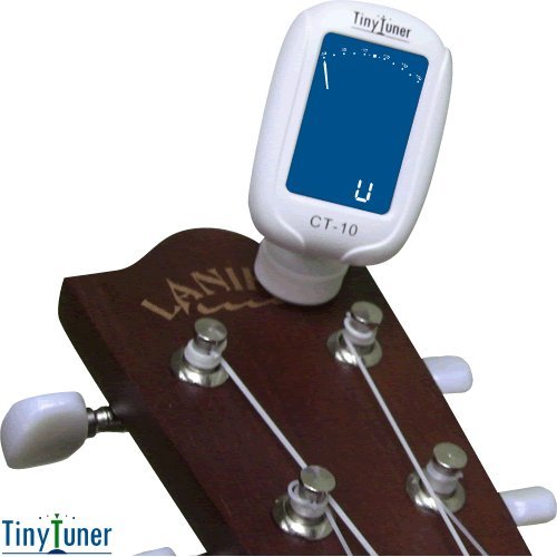 The TinyTuner CT-10 Chromatic tuner tunes just about any instrument that you can clip it on to. Since it tunes using the vibrations of your instrument (instead of a mic), you can even tune in noisy environments! And the Tiny size lets you take it anywhere. Not only that, this tuner has a clean elegant style with white casing, and a bright blue display screen which turns green when in tune. If you have to tune your instrument - why not tune in style?The TinyTuner CT-10 Chromatic tuner is also super easy to use! In fact, it's so easy to use there are only two buttons - POWER and MODE. Just clip it on your instrument, push the POWER button and then push the MODE button until your instrument is selected. The modes available are "G" for Guitar (as shown) , "B" for Bass, "V" for Violin, "U" for Ukulele (as shown), and "C" for Chromatic which can be used to tune just about all other instruments. (When used in the guitar, bass, violin or ukulele mode the string number will be displayed, but not in the chromatic mode.) After you choose your mode, you won't have to select it again because it will automatically be selected the next time you tune your instrument. You don't even have to turn your tuner off when you are finished because it will turn off automatically for you after 3 minutes of not using it.