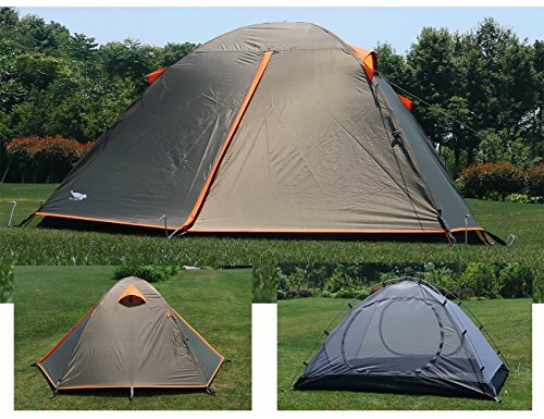 -. Feature : 210T Polyester Taffeta full-coverage sag-free rainfly with all seams sealed resists UV degradation;Coated with waterproof Polyurethane with waterproof rating of 3500mm for reliable protection from wet weather or snow;Sturdy Oxford TENT FLOOR with all SEAMS TAPED provides excellent waterproofing and anti-abrasion protection for long time use / 2. FREESTANDING design allows you to move the whole tent around to find the right spot;Equal length CORDED POLES,ANTI-SNAG stretchy pole sleeves,grommets and REFLECTIVE fly webbing buckle attachment makes assembly and setup simple and quick;REASONABLE PEAK HEIGHT allows you to sit straight inside;Detailed setup instructions included in stuff sack / 3. 2 SIDE DOORS with durable and smooth SBS? zipper for easy entry for both backpackers;AdE.q.u.a.t.e amount of NO-SEE-UM Mesh panels ensure good ventilation and dry weather view;2 GENEROUS VESTIBULES for gear storage can be partially open to maximize airflow; 2 large triangle MESH POUCHES inside the tent to keep your essentials at hand,4 REINFORCED PANELS at tent corners to sustain constant tension;2 ADJUSTABLE CEILING VENTS help to reduce condensation by letting out moist air / DIMENSIONS: Floor 4.6 *6.9 ft; Peak Height: 3.6 ft;Vestibules:6.8 sq.ft+6.8 sq.ft ;PACKED WEIGHT:5.7 LBs;Accessories:10 pcs aluminum stakes,4 guy-lines;FOOTP.R.INT(sold separately) is a must-have to increase the tent life / 5. Best Use: Expedition,car camping,backcountry adventures.Please scroll down to get the designer's Note for this version of Luxe Tempo tent