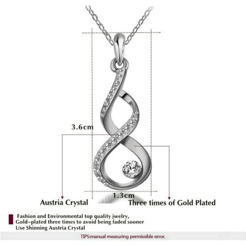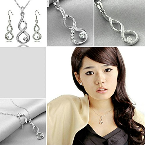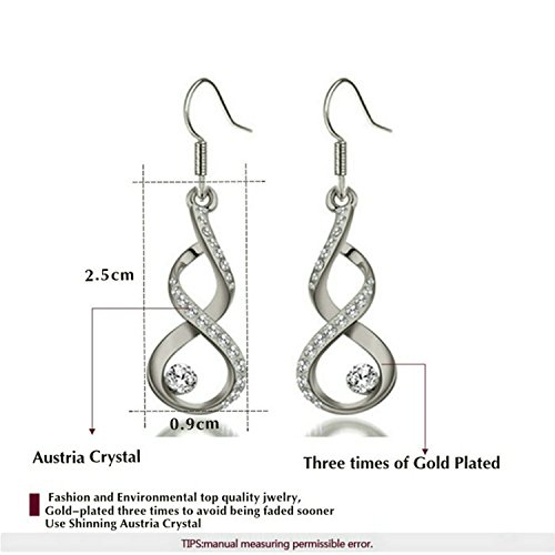 - Feature : Featuring an intertwining design for a multidimensional look, these crossover earrings are a new twist on the traditional hook. / 18K white gold plated decorated with Austrian crystals with always sparkling gloss. Fashion and attractive. / It's an excellent gift for anniversaries, graduations, birthdays, or just as a surprise to remind that special someone how much you care. / The necklace chain is 15.7''. The necklace pendant size is 1.8''*0.5''. The earring size is 0.4''*1.0''. / Shipped out in an exquisite jewelry gift box. The delivery date is about 3-8 days by AZ fulfilment Center.One year warranty.
