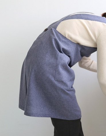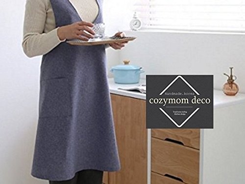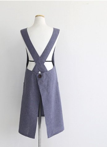 Chef Works Handmade Apron Japanese Style X Button Shape Denim Smock Natural Linen Apron-blue Color