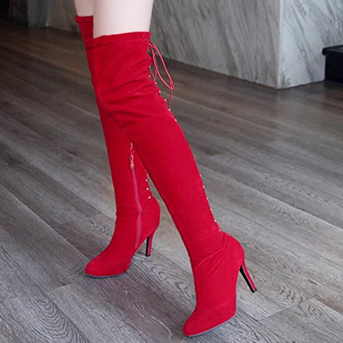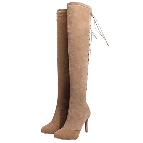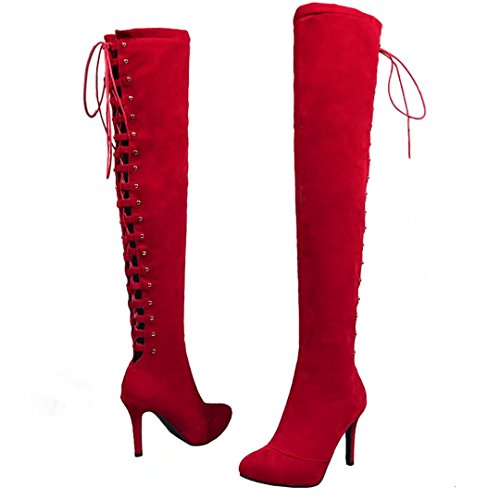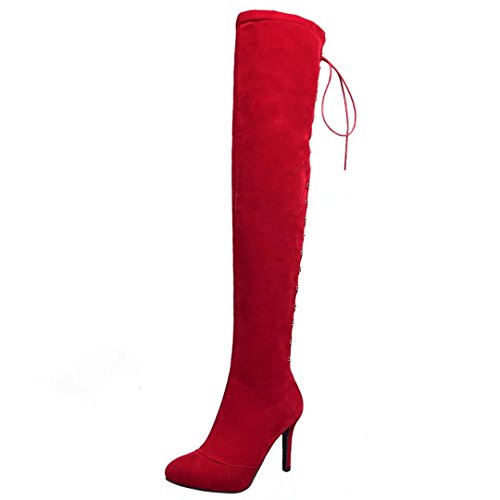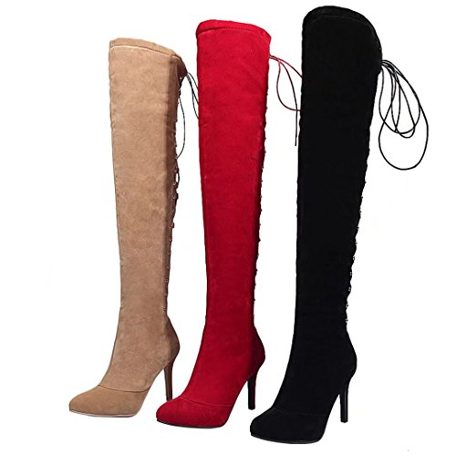 * Heel Height:9cm * Shaft: 55cm * Boots opening: 37cm * Platform Height: 0.5cm * Material: Nubuck * Inner Material: Synthetic * Sole Material:Rubber * Color: Black, Red, Apricot * Toe Type: Pointed Toe * Closure Type: Zipper * Heel Type: Stilettos * The package will be delivered to you about 7-12 business days. * Please measure the sizes of your feet before you buy this item. If your foot is slightly wider or one of your toes is longer than usual, please choose the larger size. * Q1: What can I do if I have any problems? * A1: Please send email to tell us your problems first,we will reply you in 12 hours(except holiday) and try to find the best solutions,thanks for your trust! * Q2: What can I do if the products have problems? * A2: Please send us email with the problem products picture,which can help us to solve the problem in time! * AIYOUMEI commits to the shoes' design, craftsmanship have a unique study to the Excellent quality of products and timely courtesy of customer service experience, adhering to the customer is God's philosophy.Our product main conclud boots, military style, espadrilles, flat, lace-ups, loafers panties, High heels, plateau, casuals, dress shoes, oxfords and so on.If there are any problems, please feel free to contact us at any time, we are always here to help you. 0 |