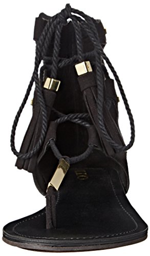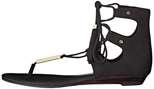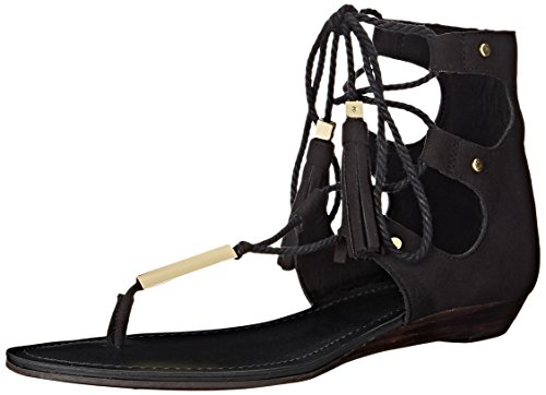 Thong sandal featuring closed heel cup and lace-up closure with tasseled ends