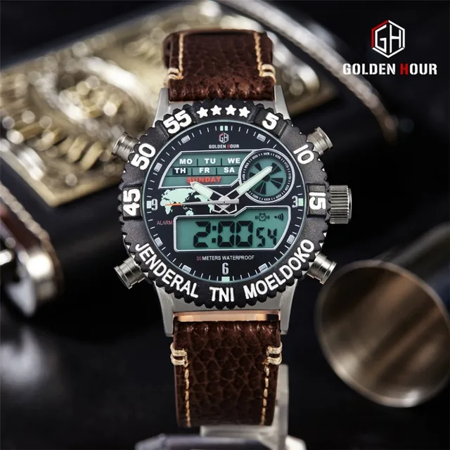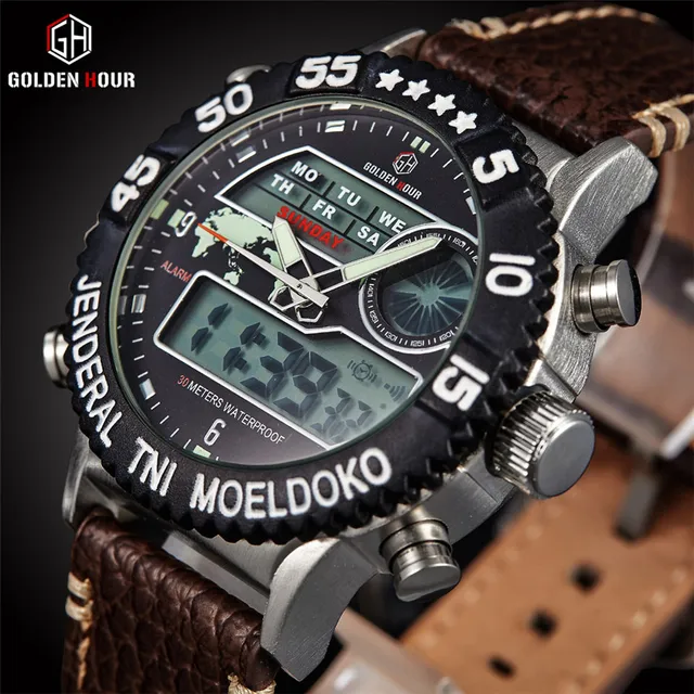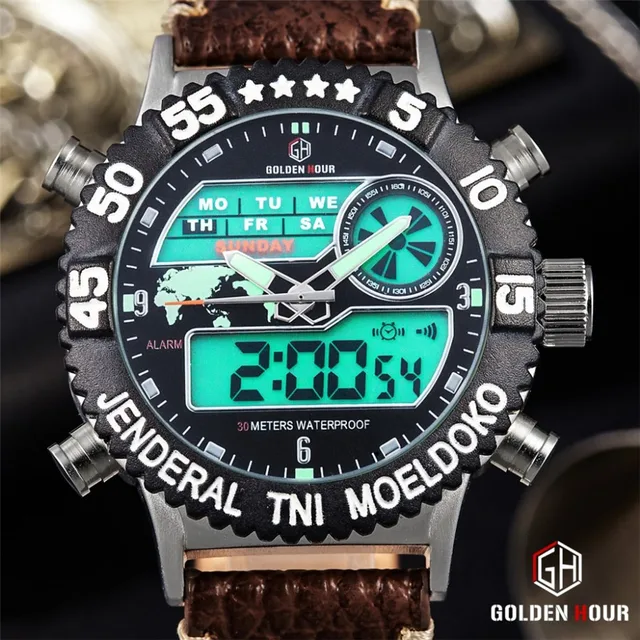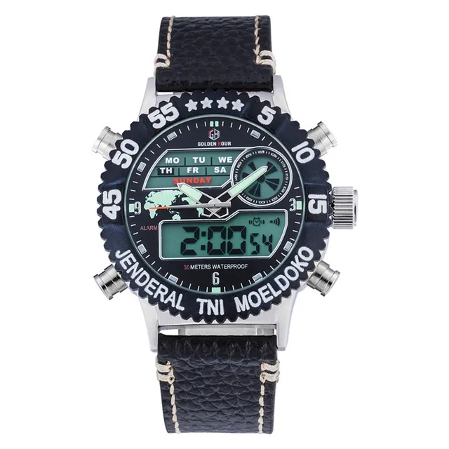 - 특징: 경보,뒤 빛,물 저항하는,달력을 완료하십시오,Rattrapante,다수 시간대,자동 날짜,발광 다이오드 표시