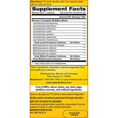 Renew Life - Ultimate Flora Probiotic Women's Complete - 90 billion - probiotics for women - daily digestive and immune health supplement - 60 vegetable capsules