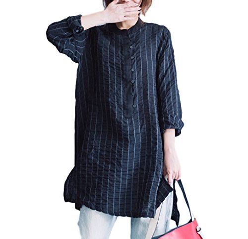 -. Title : (キリル) KIRIRU トップス レディース きれいめ 綿 七分袖 チュニック ナチュラル ストライプ おしゃれ シワ加工