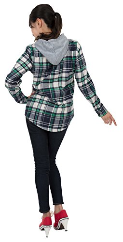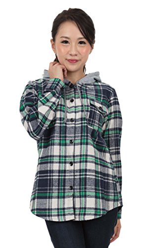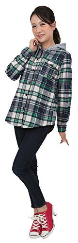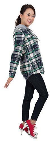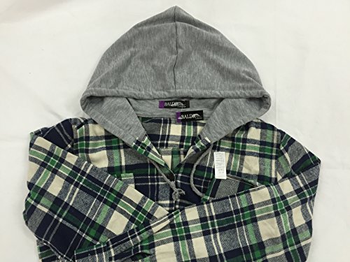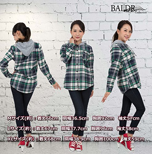 -. Title : BALDR(バルドル) カジュアル ボタン フード 付き チェック 柄 長袖 シャツ トップス アウター UV 対策 (2.グリーンL)