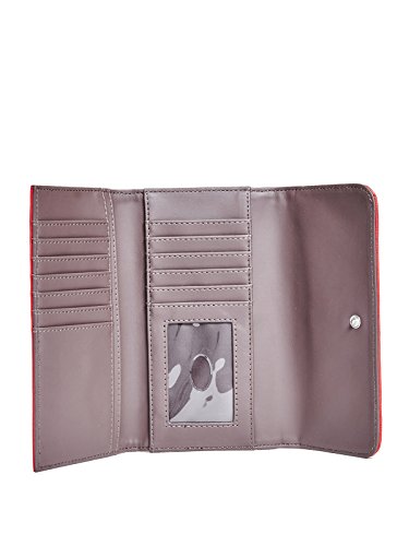 Feature : guess_factory_women_handbags_wallets_wristlets / guess factory women handbags wallets wristlets one / red saffiano faux leather exterior quilted front / panel silver tone hardware logo plaque snap button / closure tri fold design 12 card slots id window