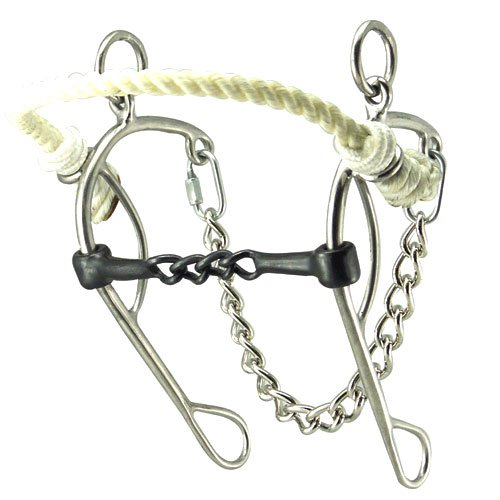 Product Description Hackamore Combo with Rope Nose 7 inch long stainless steel shanks with 5 inch sweet iron mouth. A little more than just a hackamore. 0