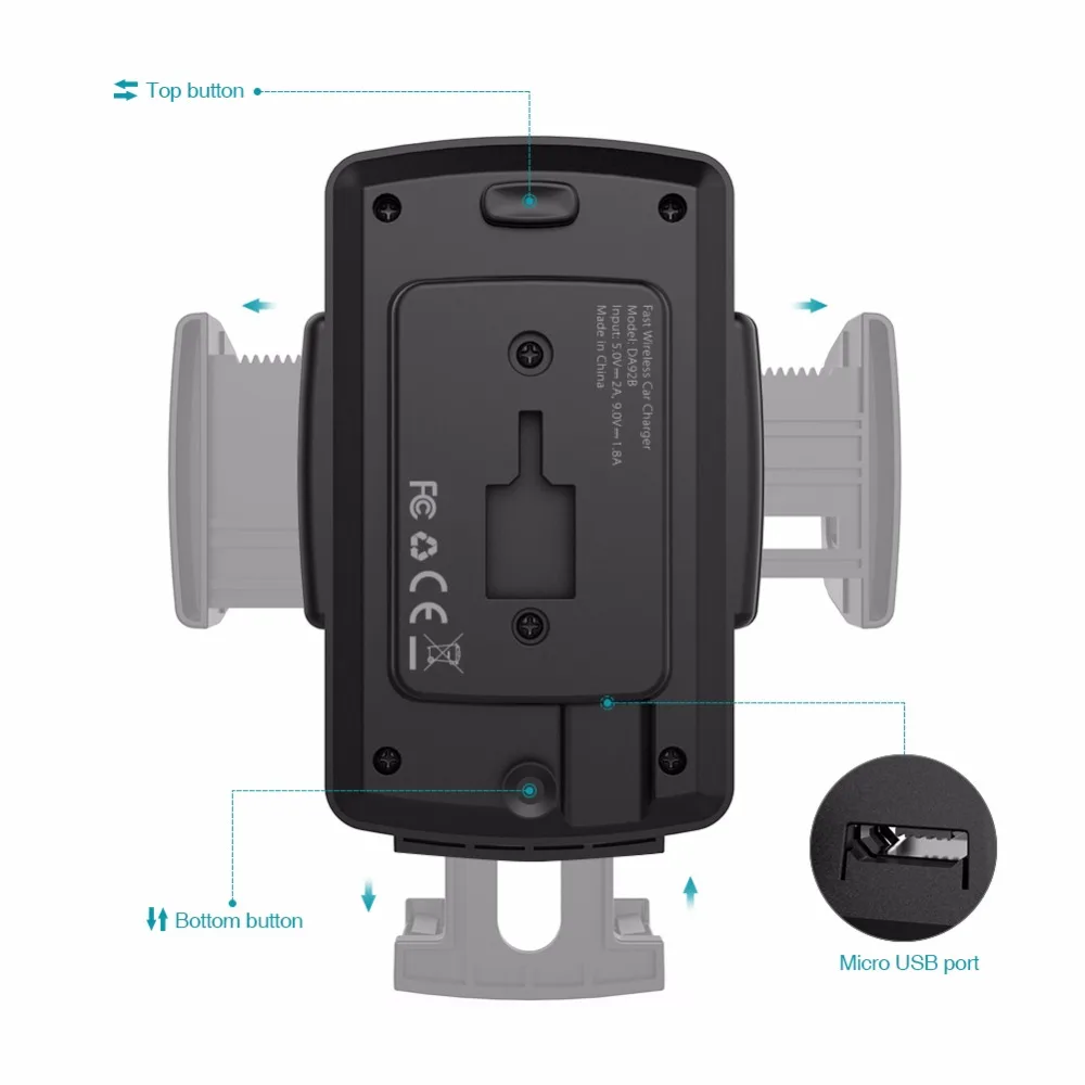 Feature:10W 3-coil Fast Wireless Car Charger (QC 2.0 Compatible)