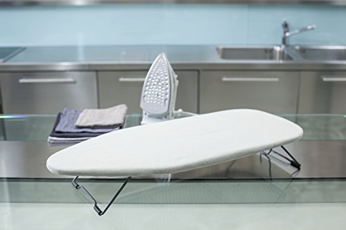Gimi Pollicino ironing board is great for quick ironing on table top. To iron comfortably, even in very small places. Great price, practical and light, it can be hung from the attached hook. Frame made of painted steel tube. Electro welded net board for better steam dispersion. 100percent cotton ironing board cover with felt pad.