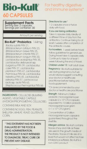 Bio-Kult is a multi-strain probiotic containing 14 strains of probiotics for everyday use. The beneficial bacteria in Bio-Kult are cry protected during the freeze drying process which means they are protected from the harsh acid environment of the stomach and are therefore able to colonies the full length of the gastrointestinal tract. Also the process allows Bio-Kult to be stored at room temperature without needing to be refrigerated. Bio-Kult can be used on a continuous basis or for short periods of time.Feature