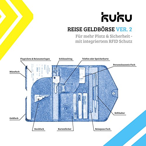 -. Feature : RFID-Schutz: Schütze deine sensiblen Daten wie Reisepass oder Kreditkarten vor Missbrauch, dank dem integrierten RFID-Schutz. / Zeit sparen: Durch die clevere Aufteilung hast du deine wichtigsten Unterlagen und Karten jederzeit griffbereit. / Praktisch: Viele verschiedene Fächer wie maßgeschneidertes Fach für Reisepass, Personalausweis, Flugticket, SIM-Karte sowie einem Stift- und Schlüsselhalter. / Intelligentes Design: Die Reisegeldbörse wurde speziell auf die Bedürfnisse auf Reisen abgestimmt. / Limitierte Auflage: Die RFID-Edition ist eine limitierte Auflage unseres Bestsellers und nur für kurze Zeit erhältlich.